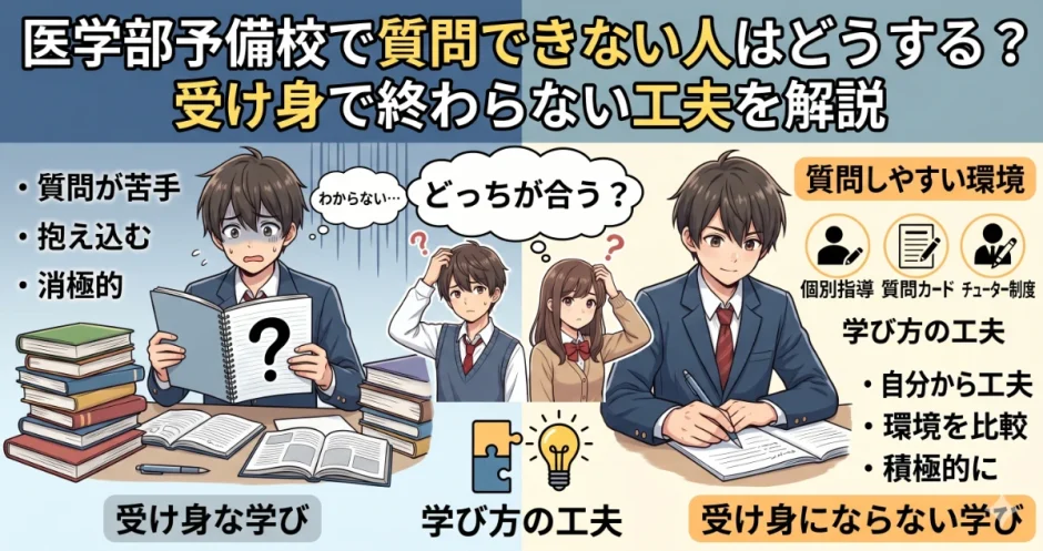 本記事では、質問が苦手な受験生が医学部予備校の中でどう立ち回るべきか、また予備校を選ぶ段階で何を確認すべきかを、具体的な工夫とともにわかりやすく解説します。
