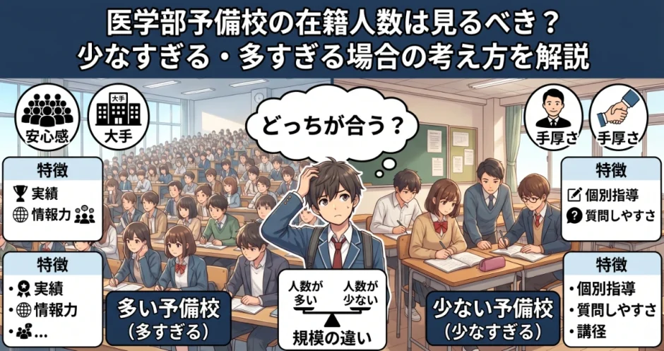 医学部予備校の在籍人数は、「多い=良い」でも「少ない=良い」でもありません。