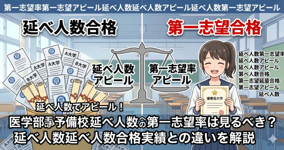しかし、医学部受験のブラックボックスを知り尽くしたプロの視点から言えば、予備校が掲げる「のべ合格者数」や「第一志望率」ほど、ご家庭を勘違いさせる危険なトラップ(罠)はありません。