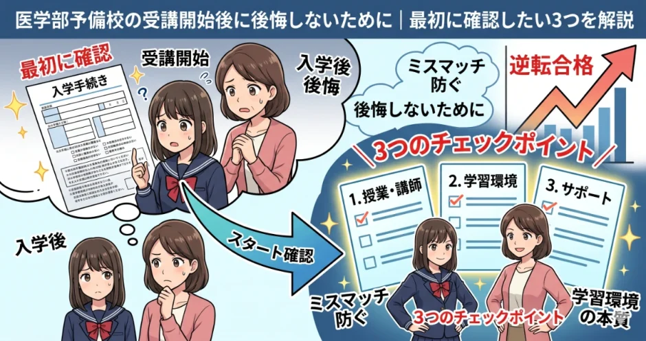 一方で、入学直後に「たった3つのポイント」を確認するだけで、環境のミスマッチを早期に発見し、最速で自分に合ったペースを掴むことができます。