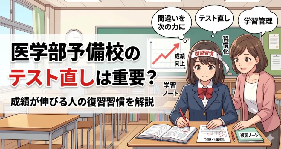 「確認テストや模試を受けるたびに点数だけを確認して、解答解説は流し読みで終わってしまう」「テストの直しをしようと思うが、どこをどのように直せばいいのか分からず後回しになる」「予備校で受けるテストはそのままにしてしまっているが、これで本当に成績が上がるのか不安だ」——こうした状況に心当たりがある受験生・保護者は、医学部受験の現場で非常に多くいます。