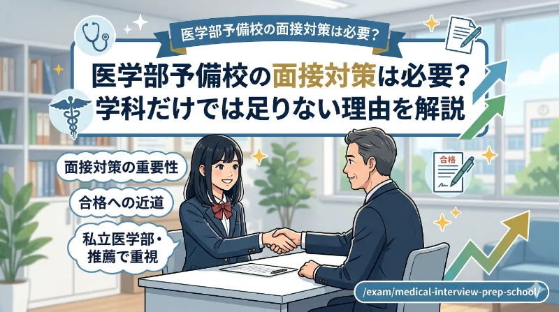 この記事では、医学部受験における面接対策の重要性と、予備校で面接対策を受けることのメリットを、学科試験との関係も交えて解説します。「面接対策は後回しでいい」と感じている方にこそ、最後まで読んでいただきたい内容です。