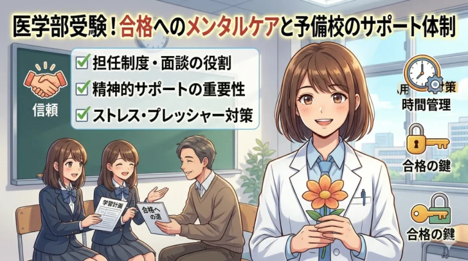 この記事では、医学部受験においてメンタルケアが重要な理由・メンタルが崩れるサインと対処法・予備校選びで確認すべきサポート体制を解説します。