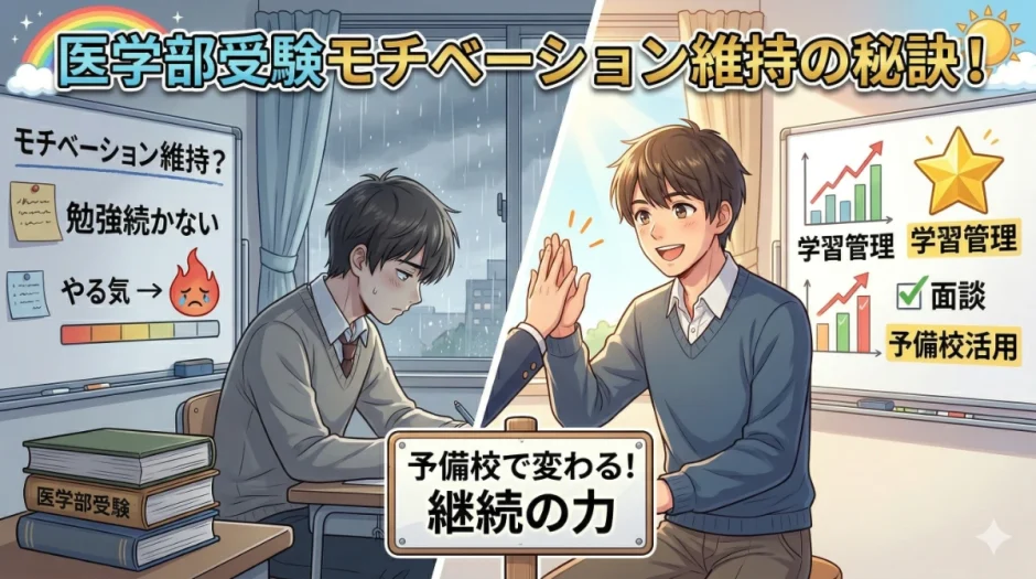 この記事では、医学部受験でモチベーションが維持しにくい構造的な理由・モチベーションを設計するための具体的な方法・予備校の仕組みをモチベーション維持にどう活かすかを解説します。