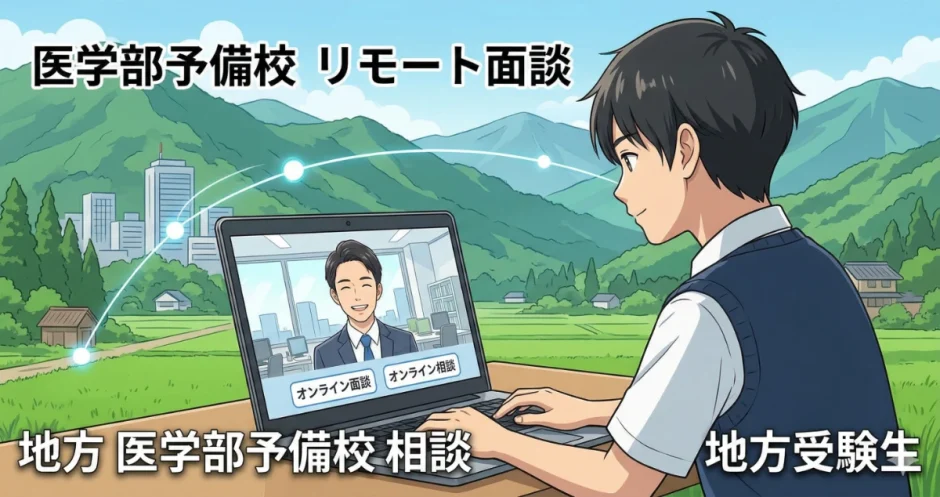 「近くに医学部専門予備校がなく、都市部の予備校を候補にしているが、何度も現地に行って相談するのは現実的でない」「オンラインで相談できると聞いたが、対面と比べて情報量が減ってしまわないか不安」「画面越しの面談で本当に自分の状況が正確に伝わるのか」——地方在住の受験生・保護者にとって、オンライン面談への活用は現実的な選択肢であると同時に、不安も多いテーマです。