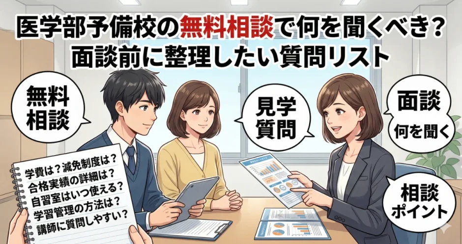 この記事では、個別相談・無料面談の前に準備すべき質問リスト・質問の優先順位・担当者の回答から予備校の実態を読む方法・面談後の判断のポイントを、保護者・受験生が主体的に相談を進めるための実践的な内容で解説します。
