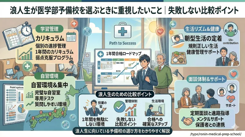 浪人生が医学部予備校を選ぶうえで重要なポイントをまとめます。