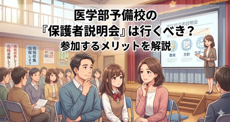 - 医学部予備校の保護者説明会に参加すべき理由は「費用の全体把握」「子どもからでは得にくい情報の収集」「担当者の誠実さの直接評価」「家庭サポートの質の向上」という4つの構造的な理由がある