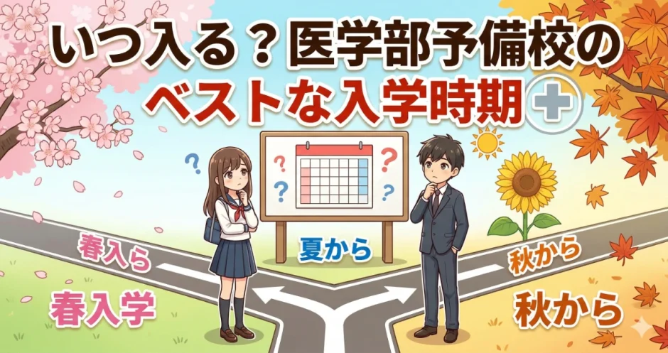 本記事では、春・夏・秋それぞれの入学時期におけるメリットとデメリット、そして逆転合格を可能にする時期別戦略から、保護者が知っておくべき残酷な裏事情(多浪への年齢不寛容、地域枠の出願期限、特待生剥奪の恐怖など)まで、徹底解説します。来春、医学部の門をくぐるための、最適なスタート時期を共に見極めましょう。