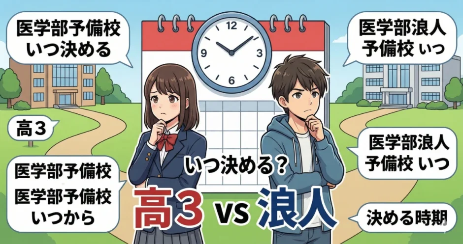 「高3になったばかりだけど、予備校はもう決めるべきなのか」「浪人が決まったが、どのタイミングで予備校を決めればいいのか迷っている」「早く決めすぎると後悔するかも、でも遅すぎると合格に影響するかも」——予備校を決めるタイミングへの迷いは、医学部を目指す受験生・保護者のほぼ全員が経験します。